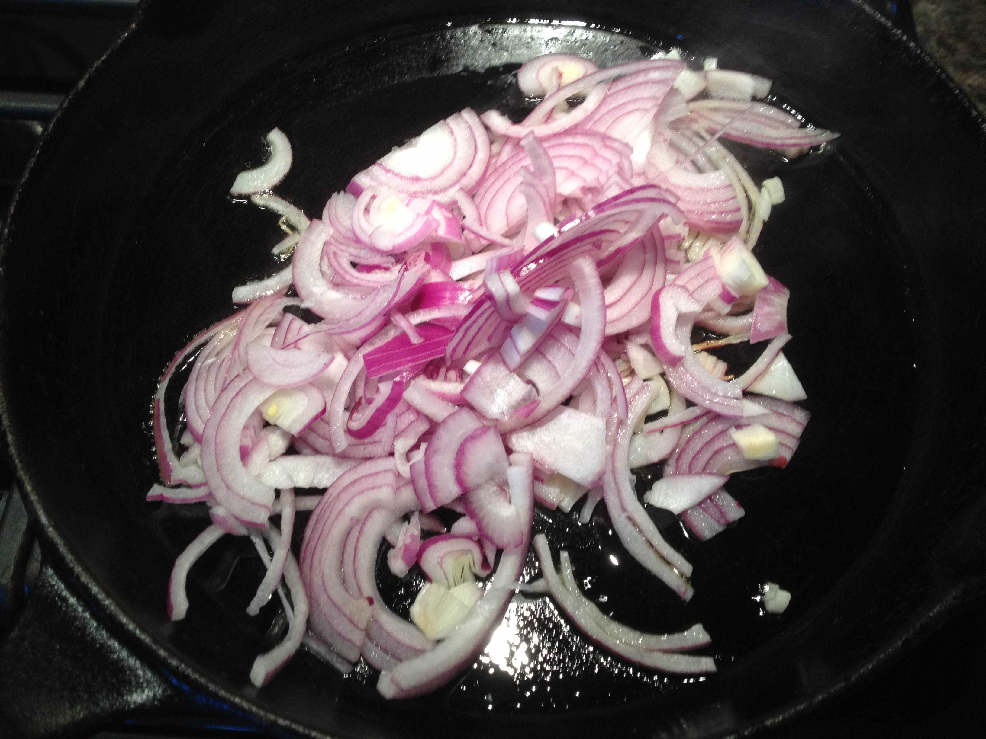 On émince les oignons (2) et on les fait revenir: