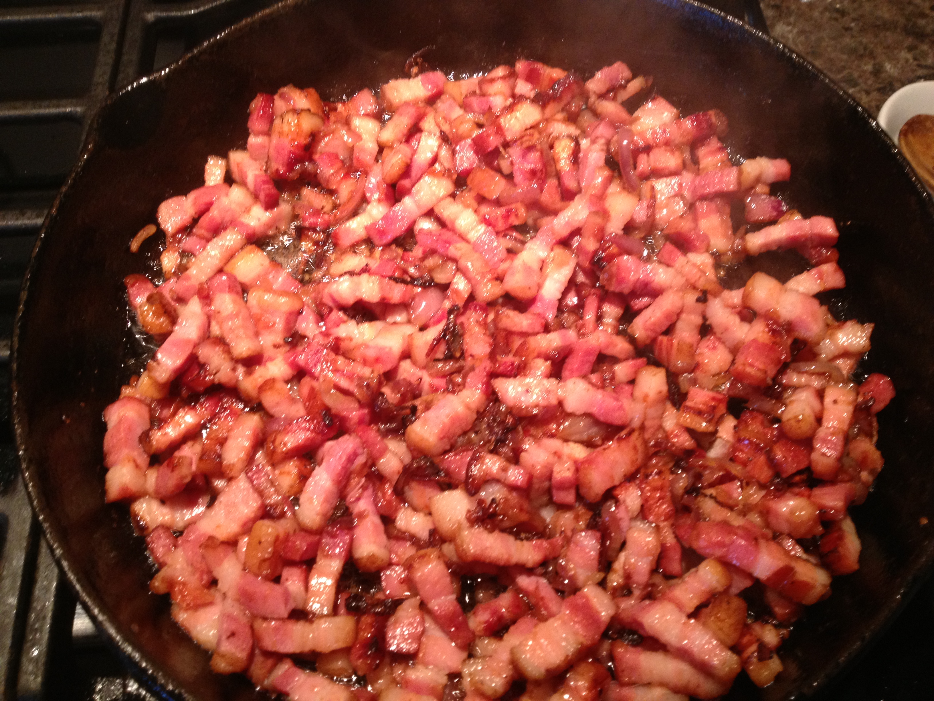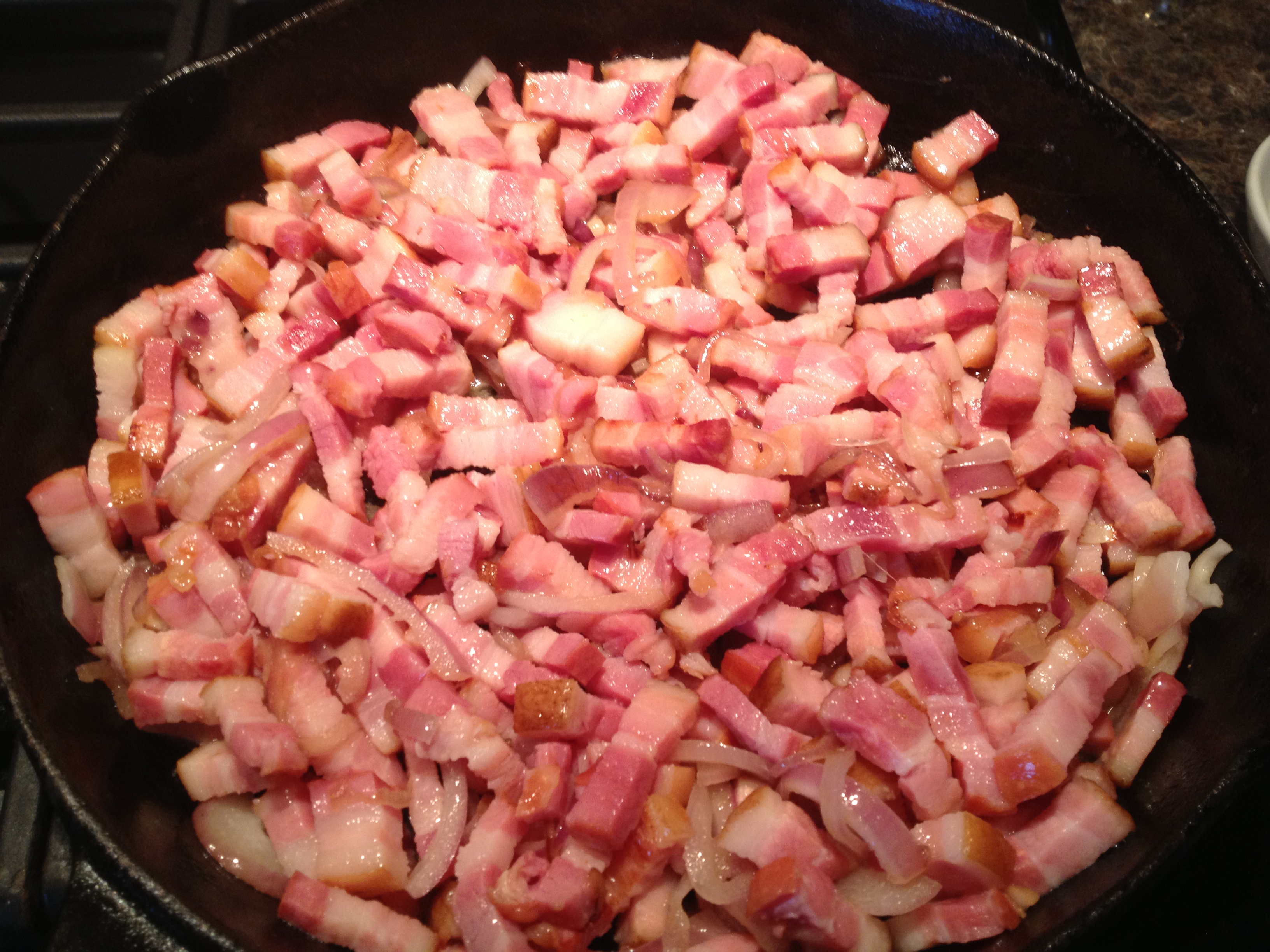 Vient ensuite le moment de faire revenir les oignons et les lardons: